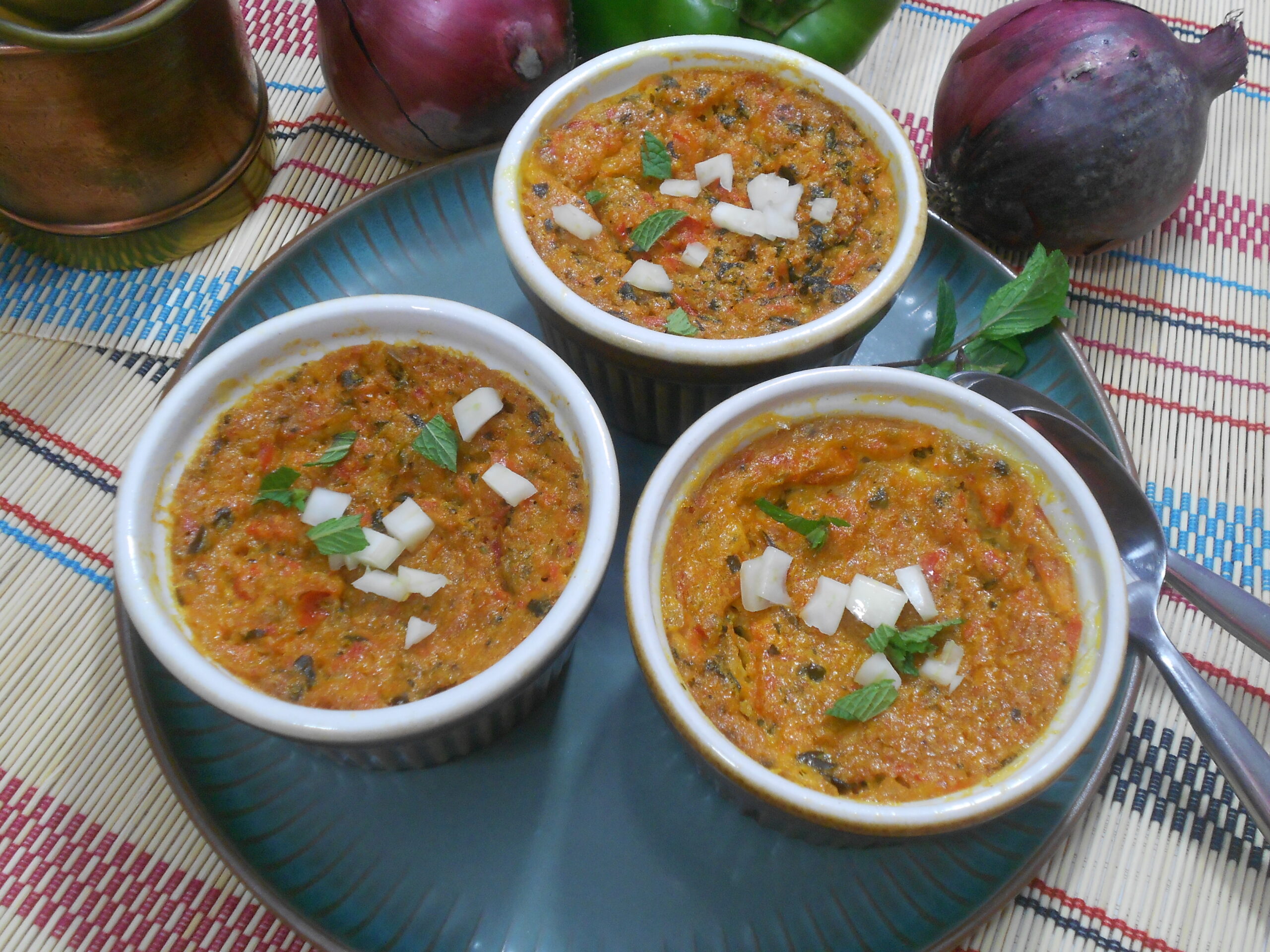 • Mettre dans un mixeur, les poivrons, l’ail, la maïzena, les œufs,sel, poivre et les épices. Mixer pour obtenir un mélange homogène.